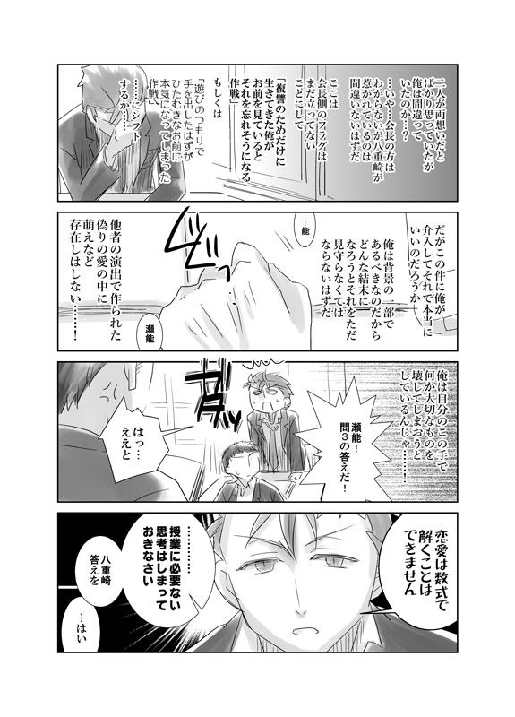 前の席のお前(名前未定)が一緒に弁当食ってる俺たちに絡んできたのが嫉妬的な感情からだったら物凄い滾る。BY瀬能