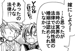 だから冥界ではまあ、同性愛とかも地上界よりは一般的だったリして。